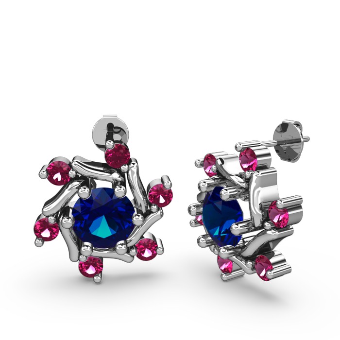Rodolit garnet ve lab safir 925 ayar gümüş küpe