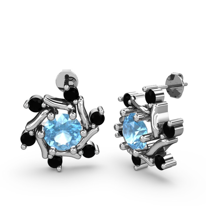 Siyah zirkon ve akuamarin 8 ayar beyaz altın küpe