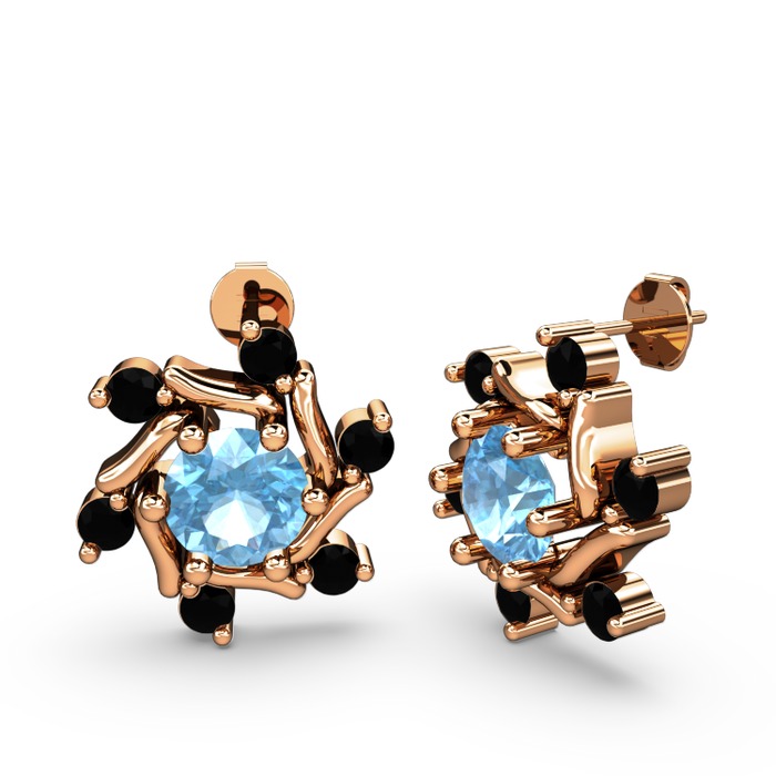 Siyah zirkon ve akuamarin 925 ayar rose altın kaplama gümüş küpe