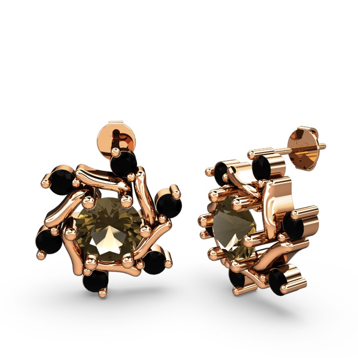 Siyah zirkon ve dumanlı kuvars 8 ayar rose altın küpe