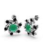 Siyah zirkon ve kök zümrüt 14 ayar beyaz altın küpe