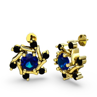 Siyah zirkon ve lab safir 14 ayar altın küpe