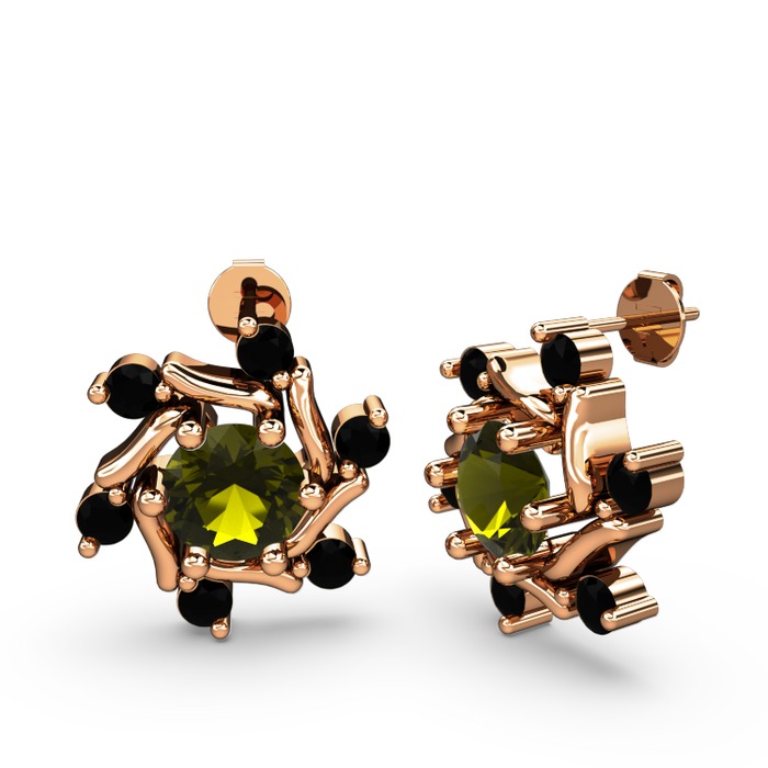 Siyah zirkon ve peridot 14 ayar rose altın küpe