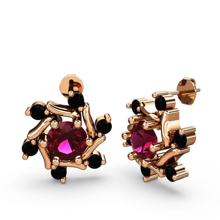 Siyah zirkon ve rodolit garnet 14 ayar rose altın küpe
