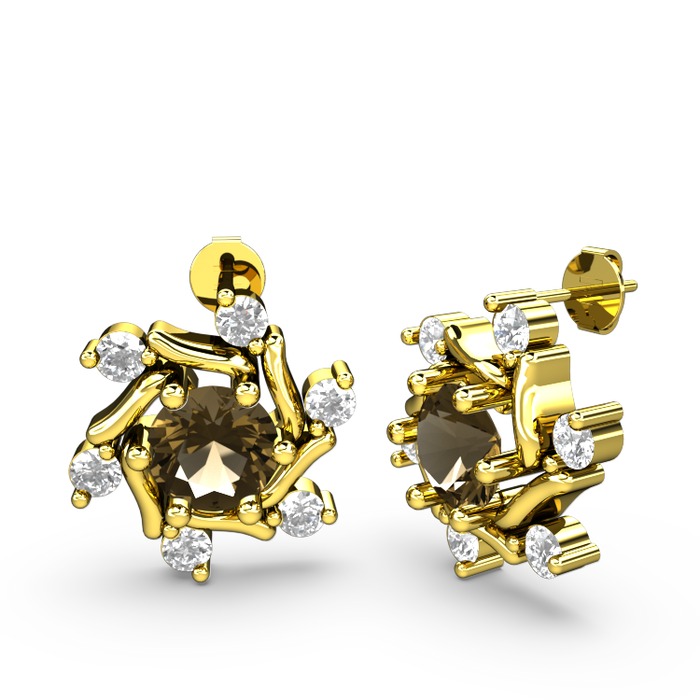 Swarovski ve dumanlı kuvars 14 ayar altın küpe