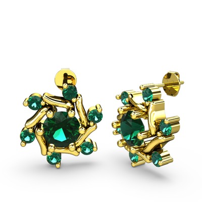 Yeşil kuvars 18 ayar altın küpe