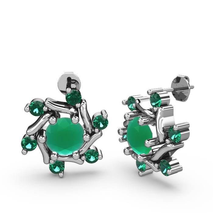 Yeşil kuvars ve kök zümrüt 18 ayar beyaz altın küpe