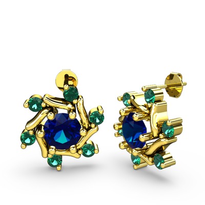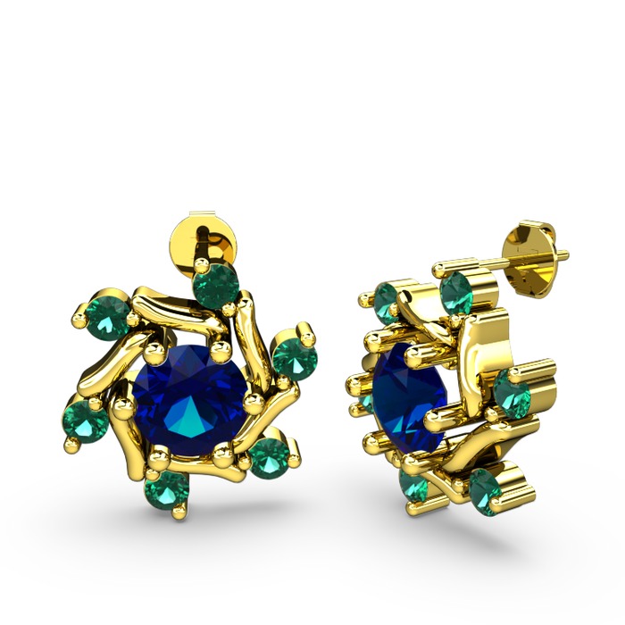 Yeşil kuvars ve lab safir 18 ayar altın küpe