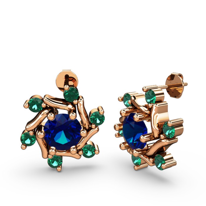 Yeşil kuvars ve lab safir 925 ayar rose altın kaplama gümüş küpe
