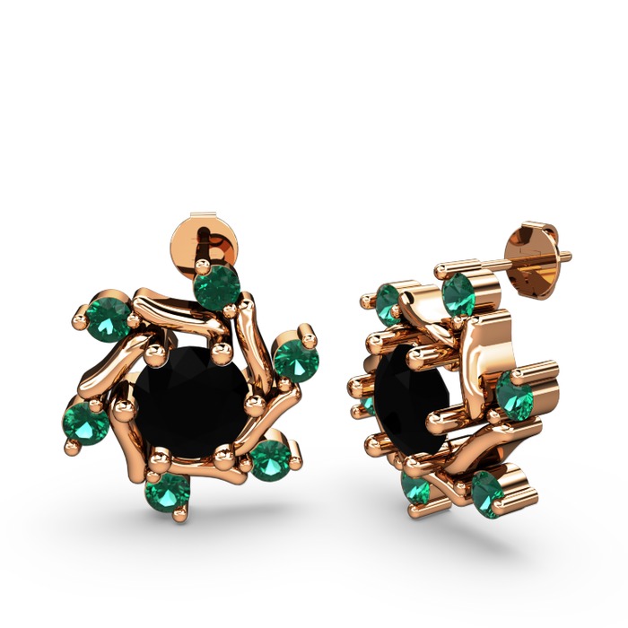 Yeşil kuvars ve siyah zirkon 925 ayar rose altın kaplama gümüş küpe