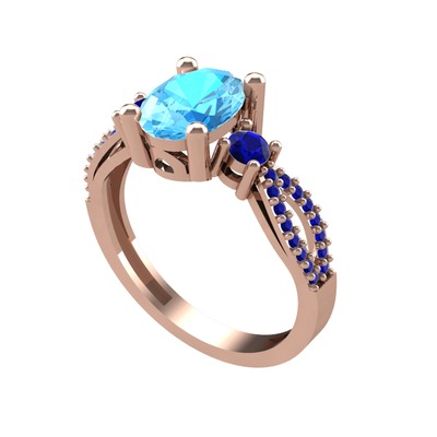 Akuamarin ve lab safir 18 ayar rose altın yüzük