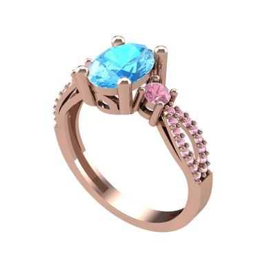 Akuamarin ve pembe kuvars 18 ayar rose altın yüzük