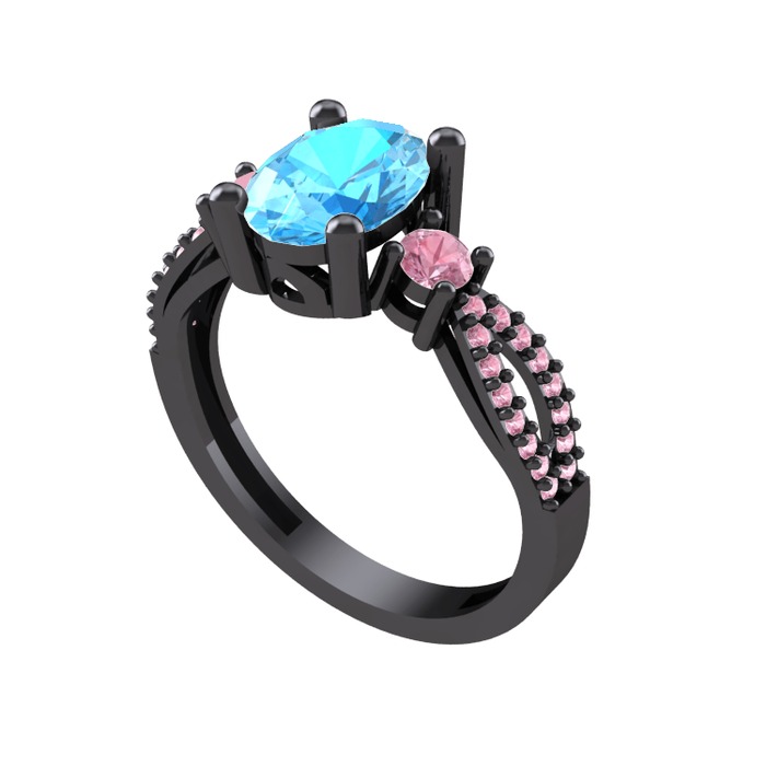 Akuamarin ve pembe kuvars 925 ayar siyah rodyum kaplama gümüş yüzük