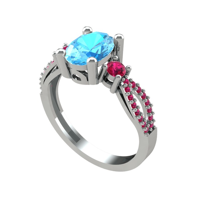 Akuamarin ve rodolit garnet 18 ayar beyaz altın yüzük