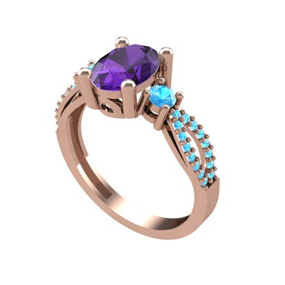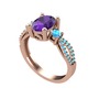 Ametist ve akuamarin 14 ayar rose altın yüzük