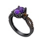 Ametist ve dumanlı kuvars 925 ayar siyah rodyum kaplama gümüş yüzük