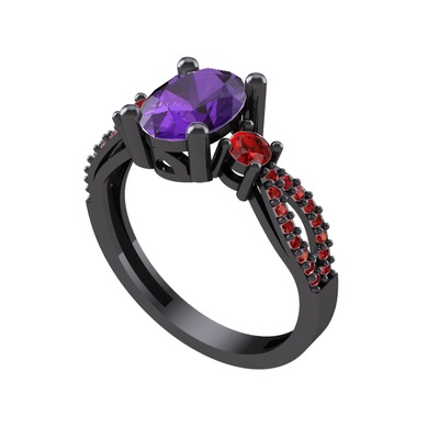 Ametist ve garnet 925 ayar siyah rodyum kaplama gümüş yüzük