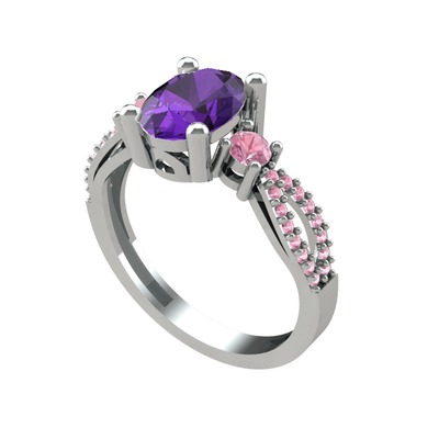 Ametist ve pembe kuvars 14 ayar beyaz altın yüzük