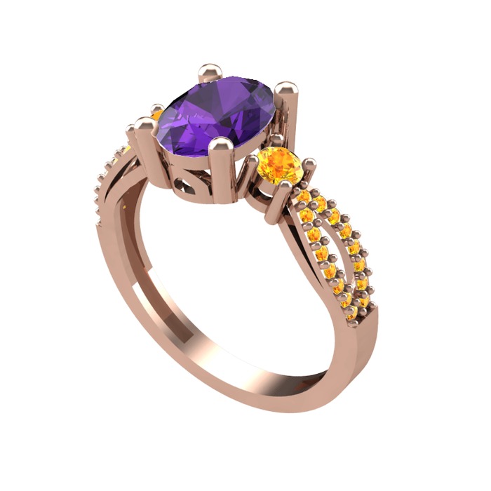 Ametist ve sitrin 8 ayar rose altın yüzük