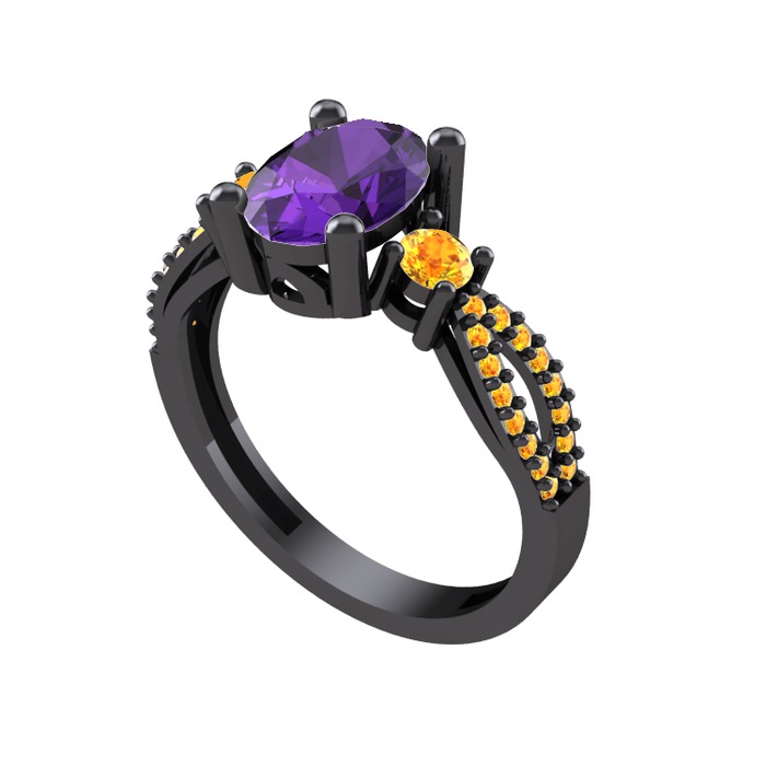 Ametist ve sitrin 925 ayar siyah rodyum kaplama gümüş yüzük