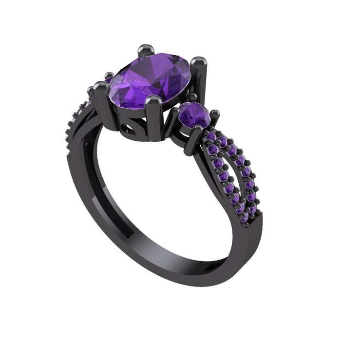Ametist 925 ayar siyah rodyum kaplama gümüş yüzük
