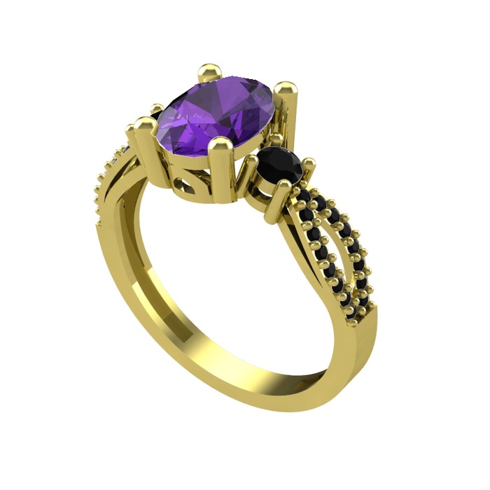 Ametist ve siyah zirkon 14 ayar altın yüzük