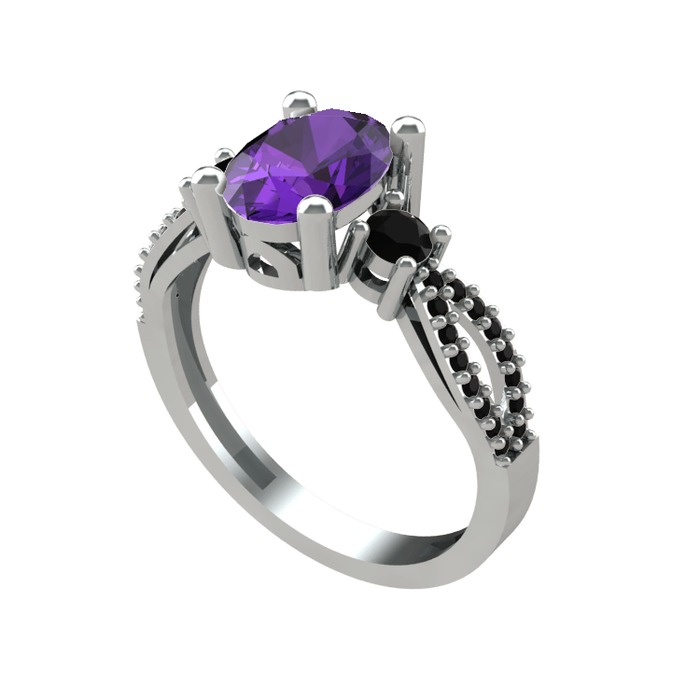 Ametist ve siyah zirkon 925 ayar gümüş yüzük
