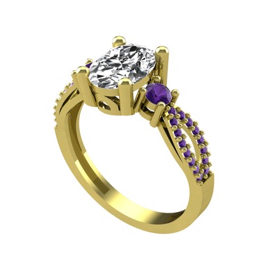Beyaz zirkon ve ametist 18 ayar altın yüzük
