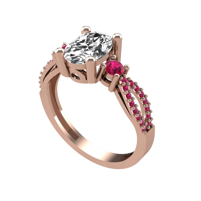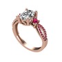 Beyaz zirkon ve rodolit garnet 925 ayar rose altın kaplama gümüş yüzük