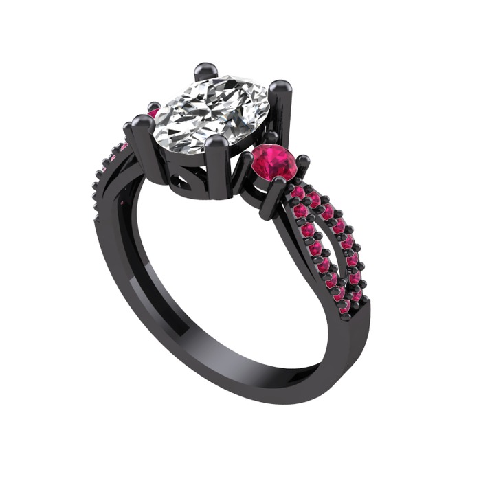 Beyaz zirkon ve rodolit garnet 925 ayar siyah rodyum kaplama gümüş yüzük