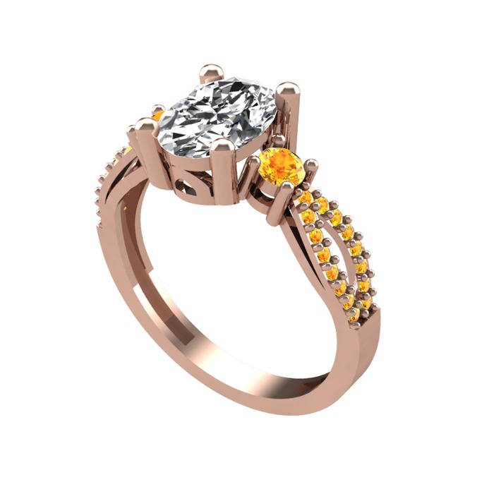 Beyaz zirkon ve sitrin 925 ayar rose altın kaplama gümüş yüzük