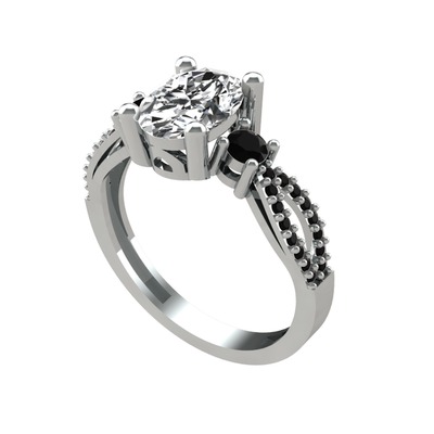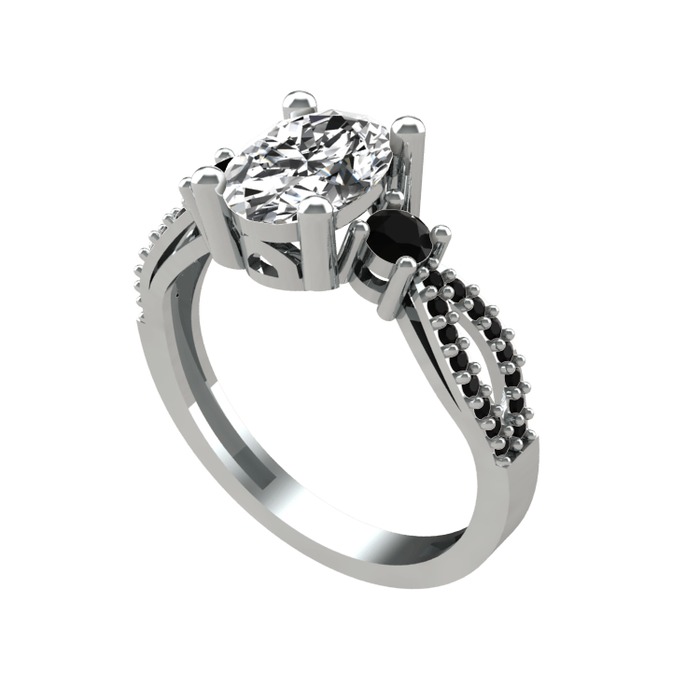 Beyaz zirkon ve siyah zirkon 18 ayar beyaz altın yüzük