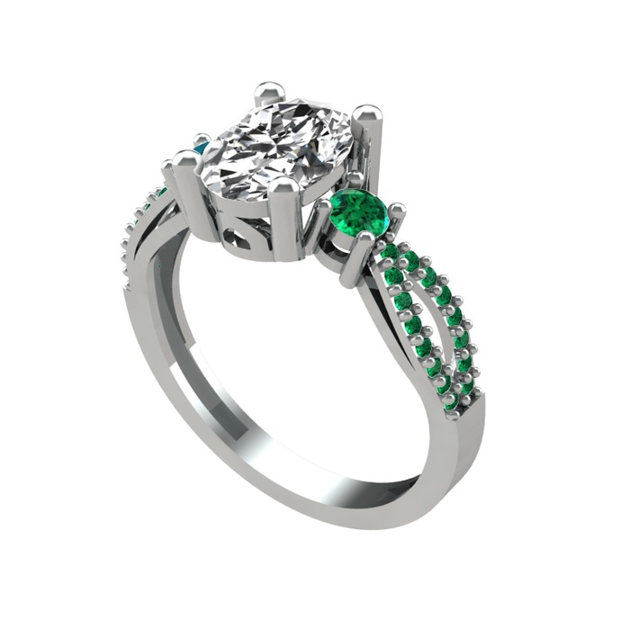 Beyaz zirkon ve yeşil kuvars 14 ayar beyaz altın yüzük