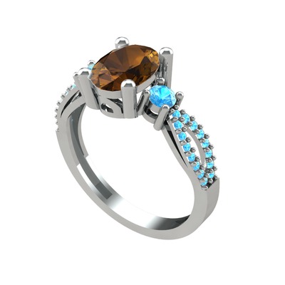 Dumanlı kuvars ve akuamarin 925 ayar gümüş yüzük