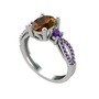 Dumanlı kuvars ve ametist 18 ayar beyaz altın yüzük