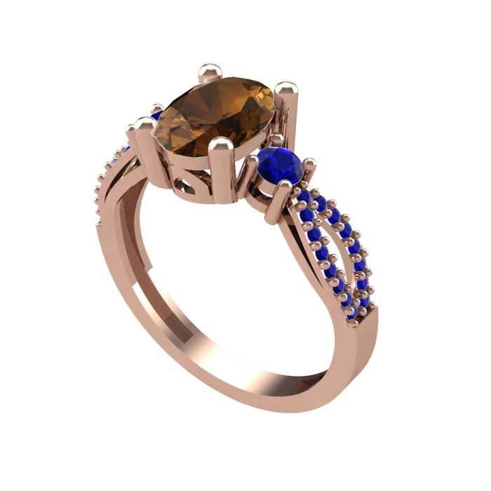 Dumanlı kuvars ve lab safir 14 ayar rose altın yüzük
