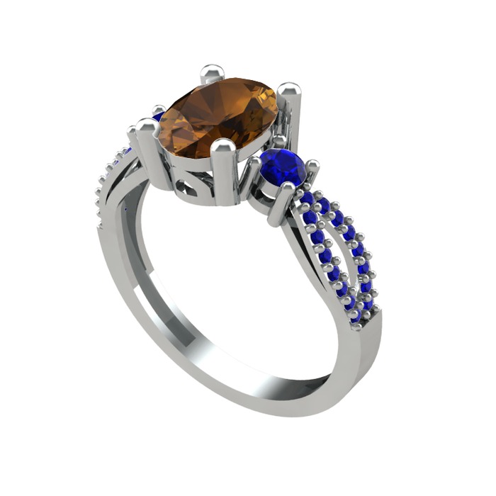 Dumanlı kuvars ve lab safir 18 ayar beyaz altın yüzük