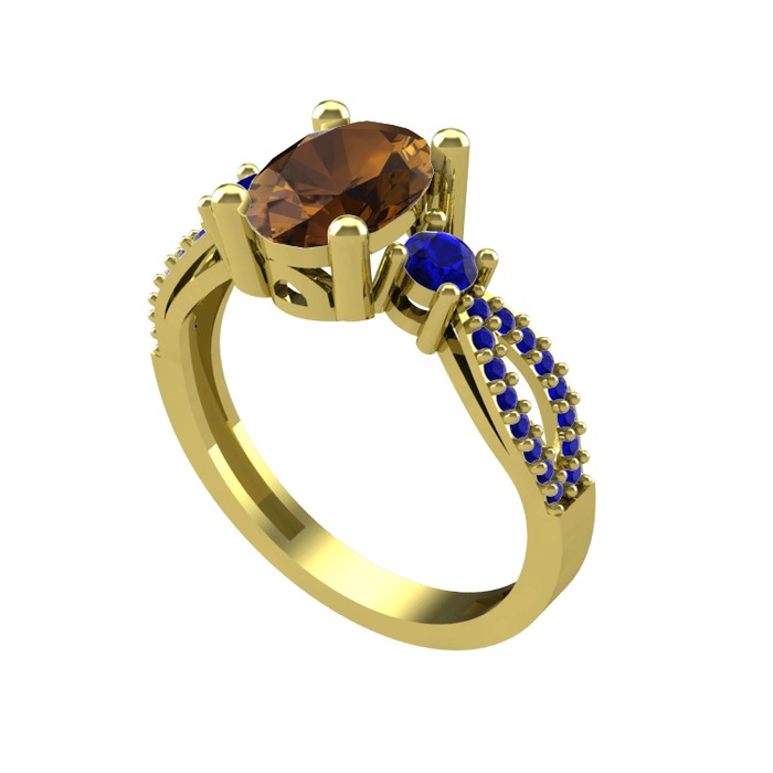 Dumanlı kuvars ve lab safir 8 ayar altın yüzük