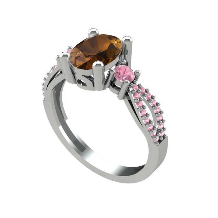 Dumanlı kuvars ve pembe kuvars 8 ayar beyaz altın yüzük