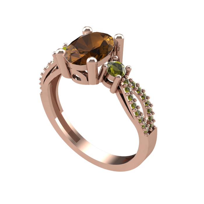 Dumanlı kuvars ve peridot 14 ayar rose altın yüzük