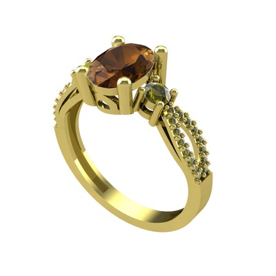 Dumanlı kuvars ve peridot 18 ayar altın yüzük