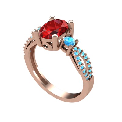 Garnet ve akuamarin 925 ayar rose altın kaplama gümüş yüzük