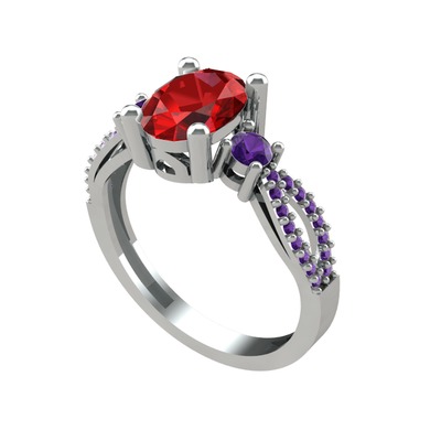 Garnet ve ametist 14 ayar beyaz altın yüzük