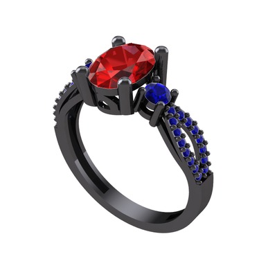 Garnet ve lab safir 925 ayar siyah rodyum kaplama gümüş yüzük