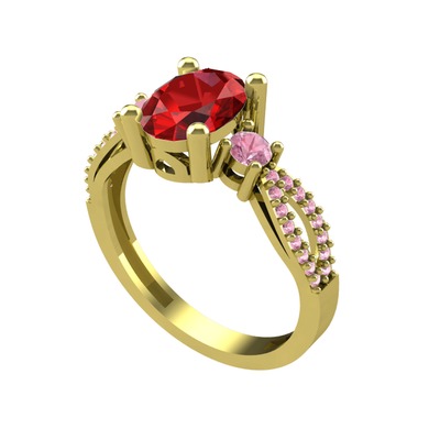 Garnet ve pembe kuvars 8 ayar altın yüzük