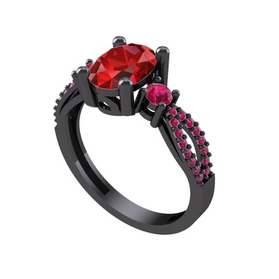 Garnet ve rodolit garnet 925 ayar siyah rodyum kaplama gümüş yüzük