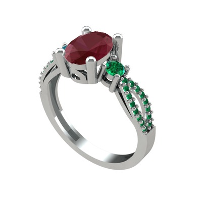 Kök yakut ve yeşil kuvars 8 ayar beyaz altın yüzük