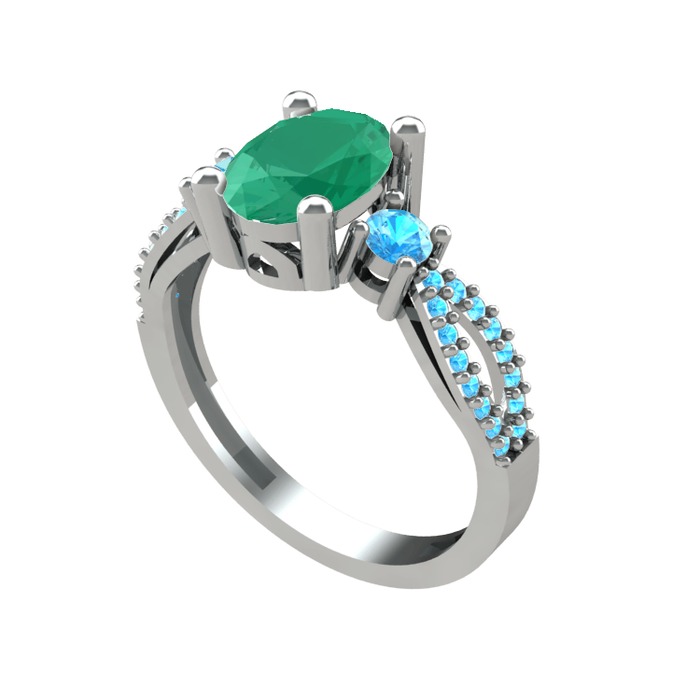 Kök zümrüt ve akuamarin 8 ayar beyaz altın yüzük