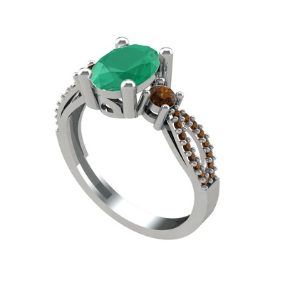 Kök zümrüt ve dumanlı kuvars 18 ayar beyaz altın yüzük