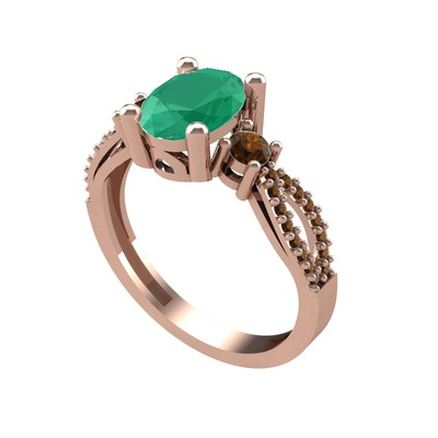 Kök zümrüt ve dumanlı kuvars 18 ayar rose altın yüzük